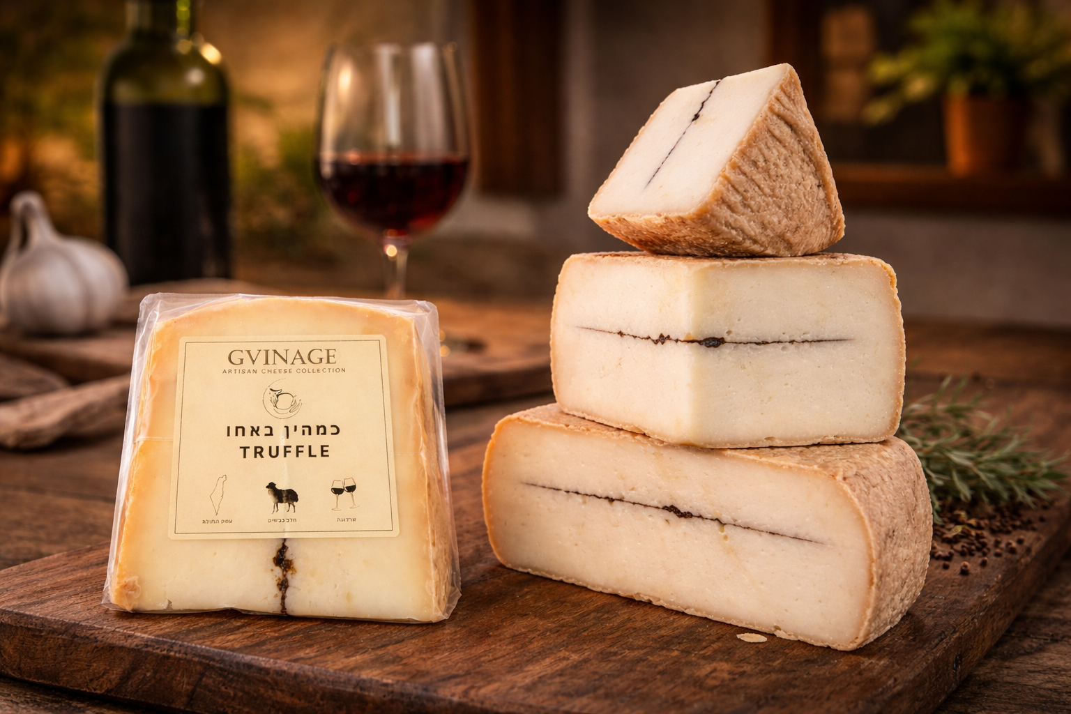 גבינת עיזים קרמית עם כמהין שחורות מאדמות הגליל — פינוק אמיתי.