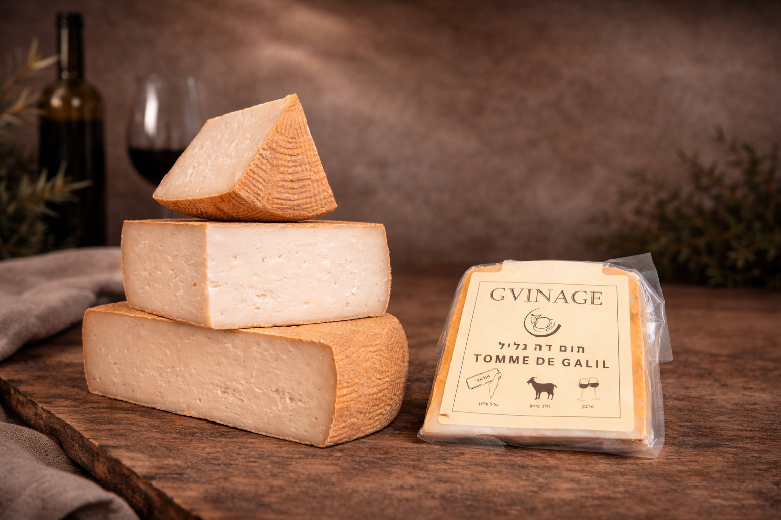 חלב עיזים טרי מחוות רום בגליל העליון — מיושן לגלגל מוצק וניתן לפריסה.
